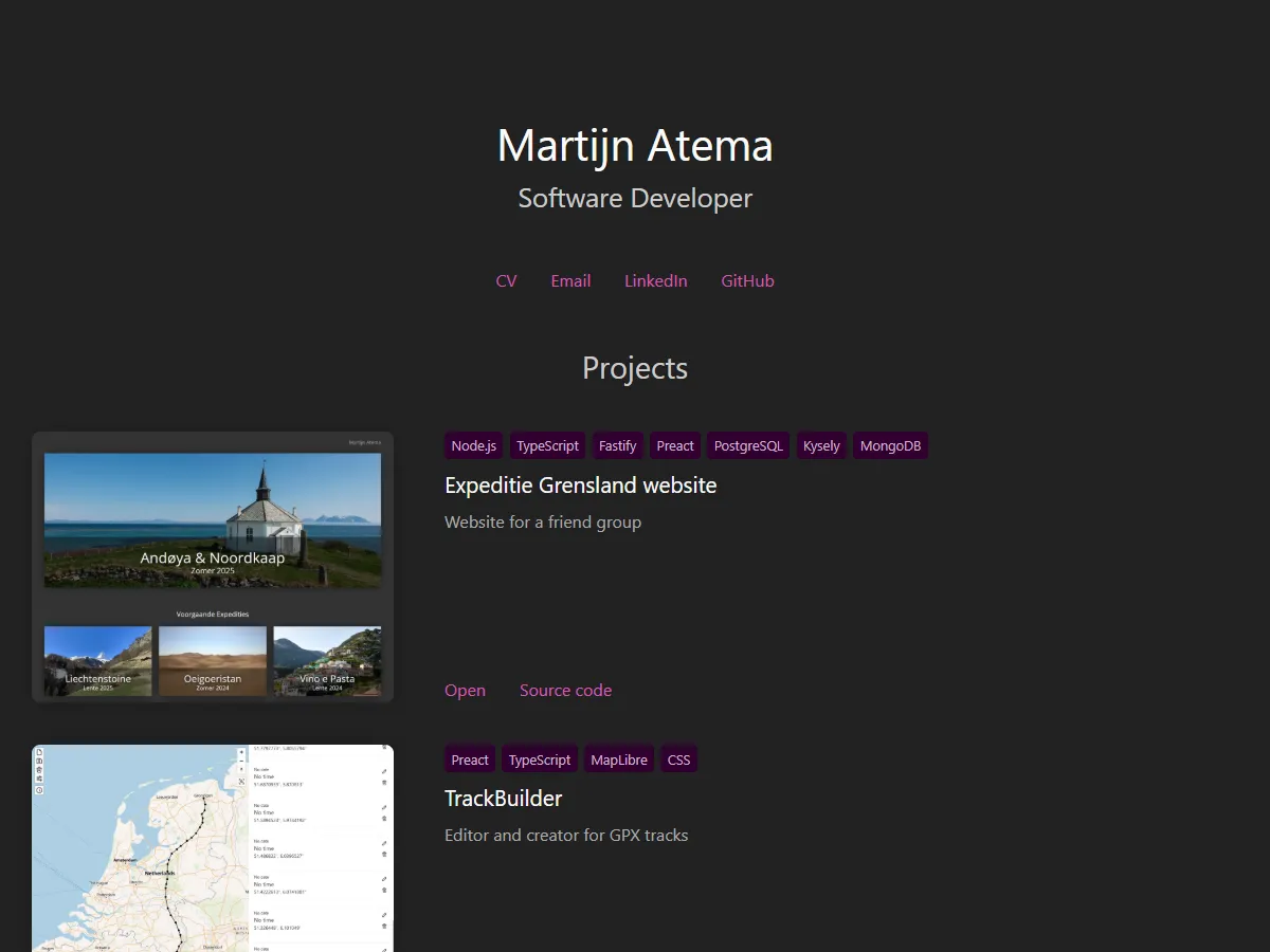 Welcome! I built this site to show my past and current projects and experience in a neat overview. Built statically for easy hosting and updating, with a custom design and little touches of interactivity.