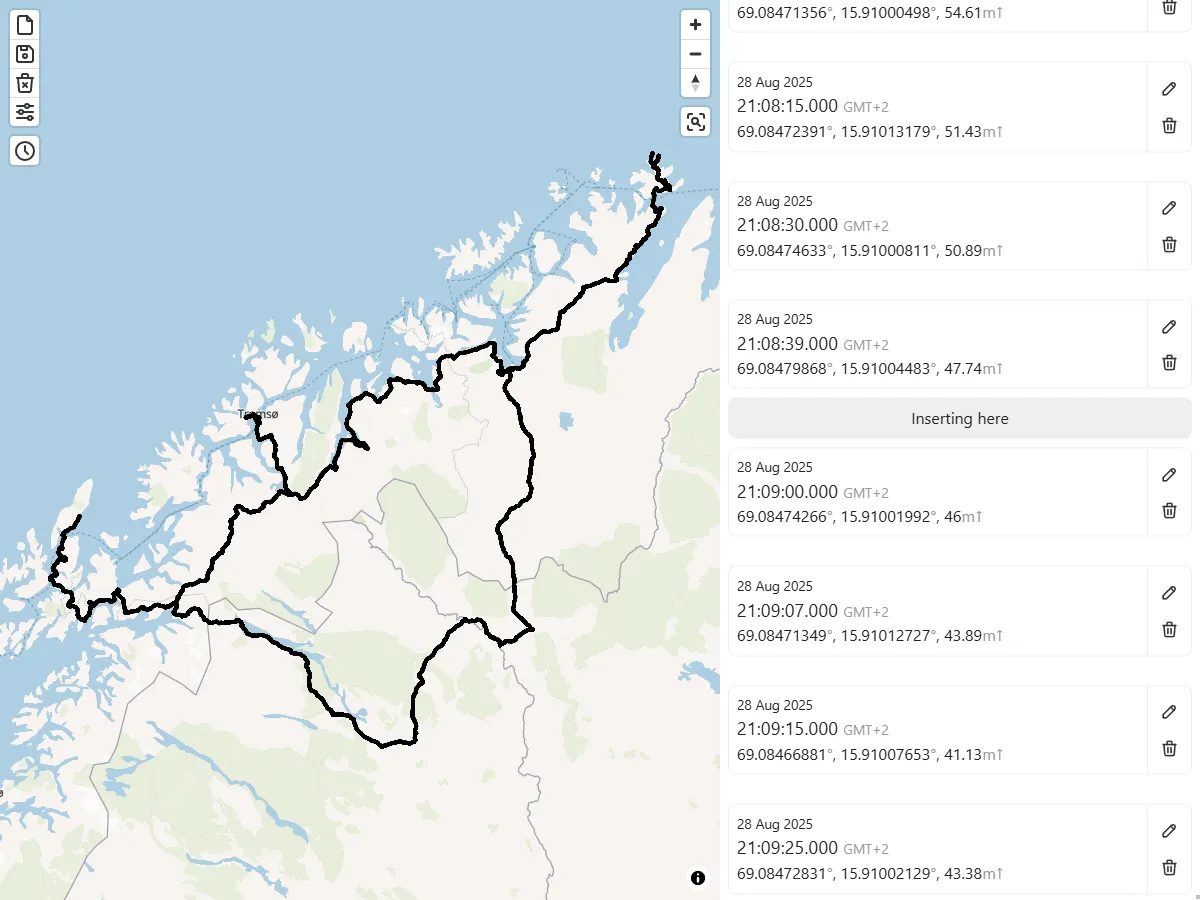 An application for creating and editing GPS tracks locally in the browser, built as a hobby-project.
